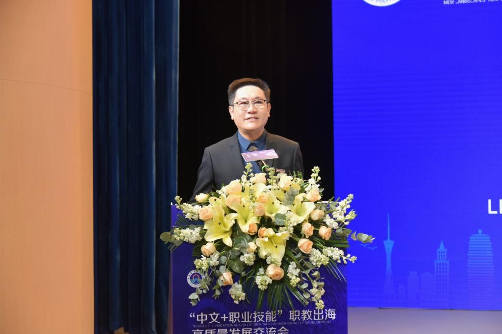 厉励在致辞中对与会嘉宾领导和各界朋友来校表示欢迎,并简要介绍了学校办学历程、办学特色和办学成绩,重点分享了学校在国际合作交流和“中文+职业技能”职教出海中取得的显著成效。他指出,学校将携手海内外职业院校,扎根中国、融通世界,立足时代、面向未来,不断加大与“一带一路”沿线国家的合作与交流,建立健全职业教育国际化人才培养体制机制,打造具有全球胜任力的人才培养体系,为构建人类命运共同体贡献职业教育力量。